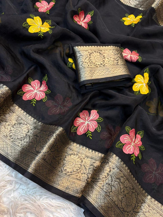 Chikankari Work Shimmer Silk Saree