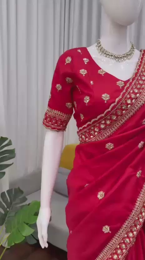 Red Jalpari Silk Saree with thread and Sequin Work