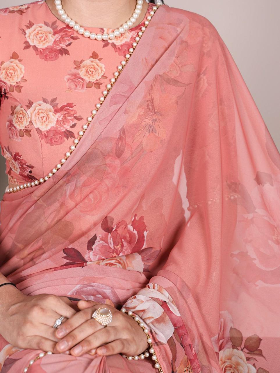 Step into effortless elegance with this beautiful georgette saree designed to give you a classy and graceful look for any occasion.
