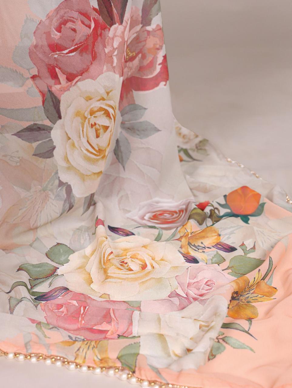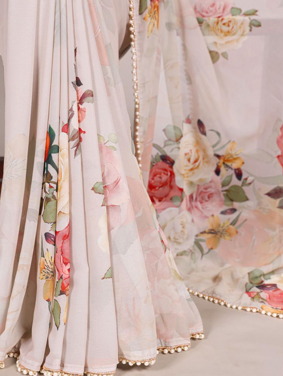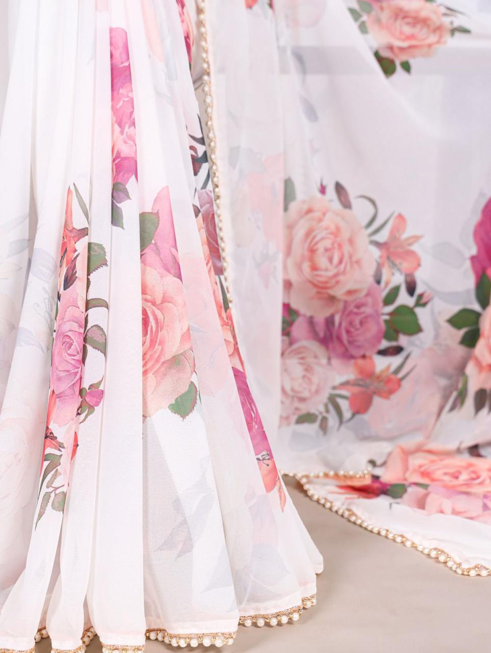 Elegant Georgette Printed Saree with Pearl Lace Border